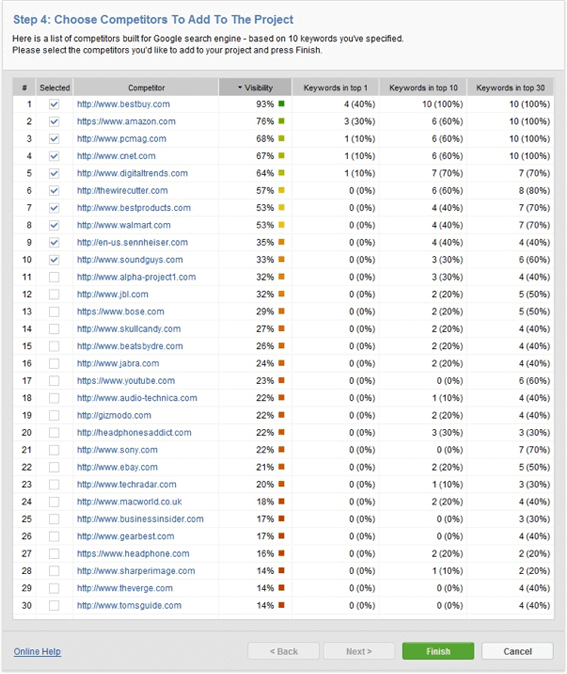 9) Now that you have a list of the top 30 competitors for the target keywords you"ve identified, you can clearly know which websites are your organic search competitors.