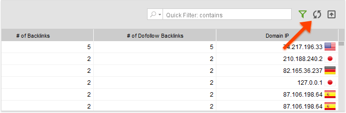 Once you use the Update Factors button in the top middle of the workspace for each of your projects, the data will be loaded in the backlink viewing pane in the middle of the screen. From there you can return to the Link Intersection pane for the project you created for your website and click the reload button in the top right of the screen, and the link metric factors that you selected will populate in the viewing pane of the Link Intersectionarea.
