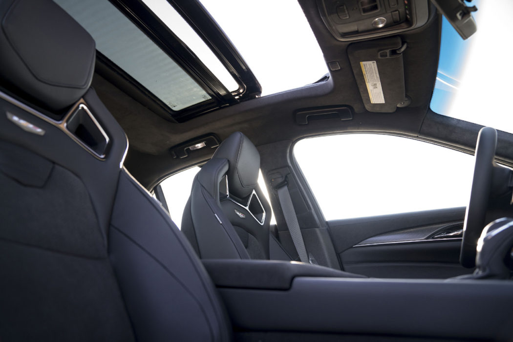It’s not up to Audi/Mercedes levels but it’s still a very a nice place to be. Matte carbon fiber and suede adorn the dash, center console, and door panels. The entire headliner is also suede. Front seats are 20-way power, heated and ventilated with driver’s side memory function as standard. The Recaro performance seats have adjustable side bolsters keep you in place when the going gets twisty and fast. The revised CUE system works well and can display navigation directions and the current song playing at the same time.