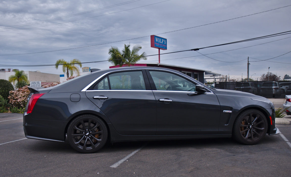 Christmas came just a tad late this year but the wait was worth it. As the last car tested in 2017, the 2018 Cadillac CTS-V sedan didn’t make it in time for our Favorite Cars Of 2017 article but it certainly put a smile on my face for a week. Our particular tester came with lots of extra goodies including a $6,250 carbon fiber package – carbon fiber hood vent, spoiler, front splitter and rear diffuser- making the Caddy some 450lb. lighter than the Dodge Charger Hellcat. Run the numbers and these two have nearly identical weight to power ratios and both reach 150 mph in just less than 17.5 seconds.