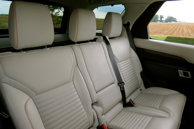 Stylish wraparound LED-accented headlights amplify the Discovery’s powerful expression along with a large lower grille opening pressed in by distinctive embrasures. A broad hood, strong shoulders, a rising beltline, and a stretched roofline are additional standout features. Angled roof pillars suggest movement, yet sturdiness. In particular, I like the thick C-pillars which leads to a long swatch of glass that appears to wrap around to the back.
