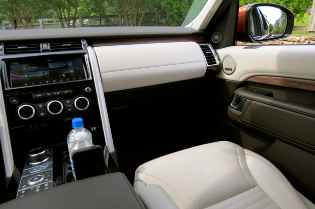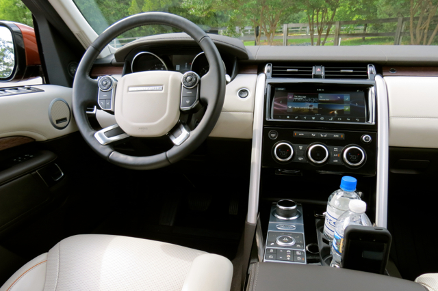 One of the hallmarks of Land Rover is the quality, fit and finish of the materials used. Bold horizontal and vertical lines grace the cabin with light and dark color choices supplying contrast as well as visual appeal.